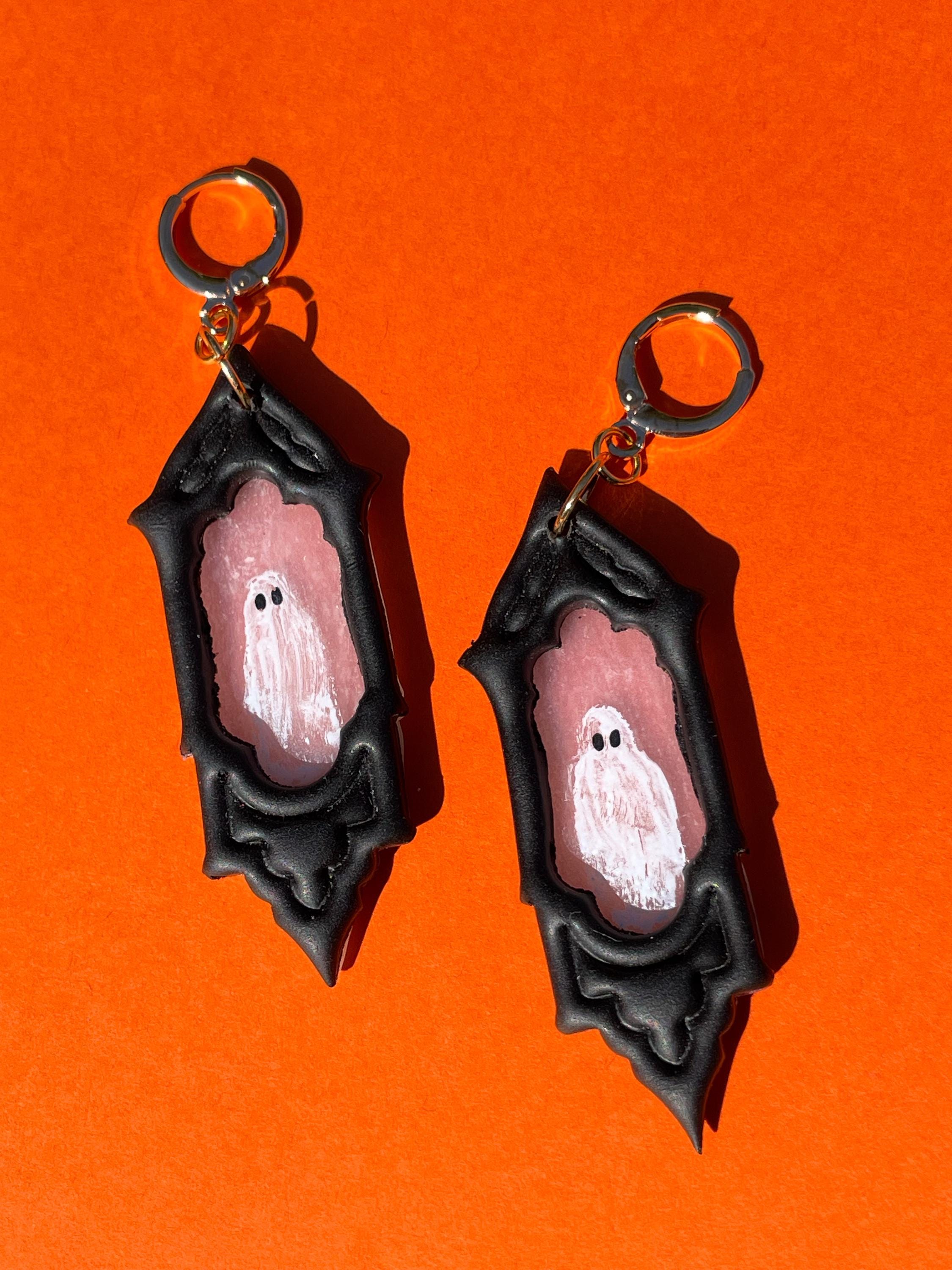 Do not bend or drop earrings. Wipe clay clean with a damp cloth or a q-tip dipped in acetone for stuck on stains. Do not use acetone on painted pieces.