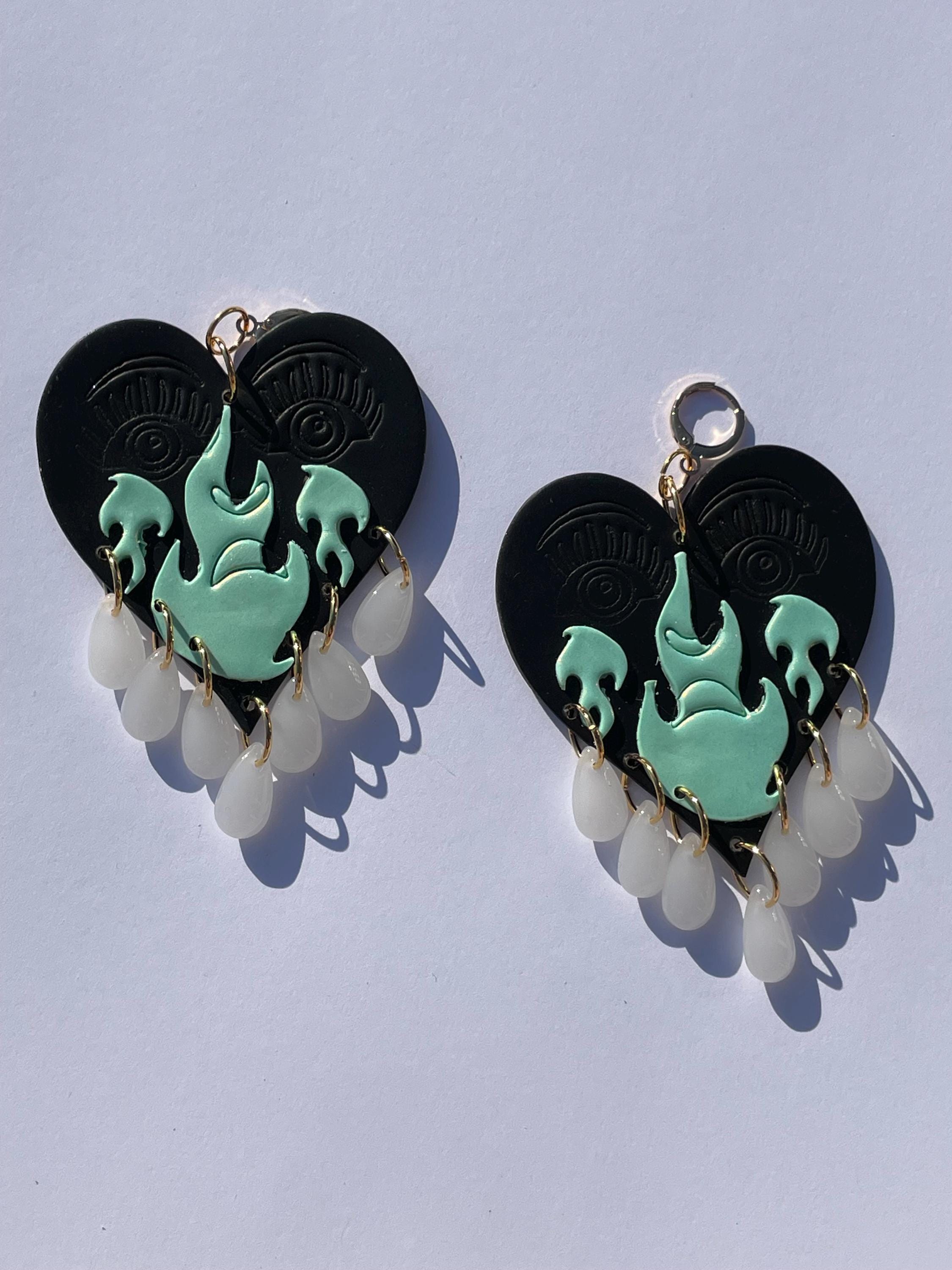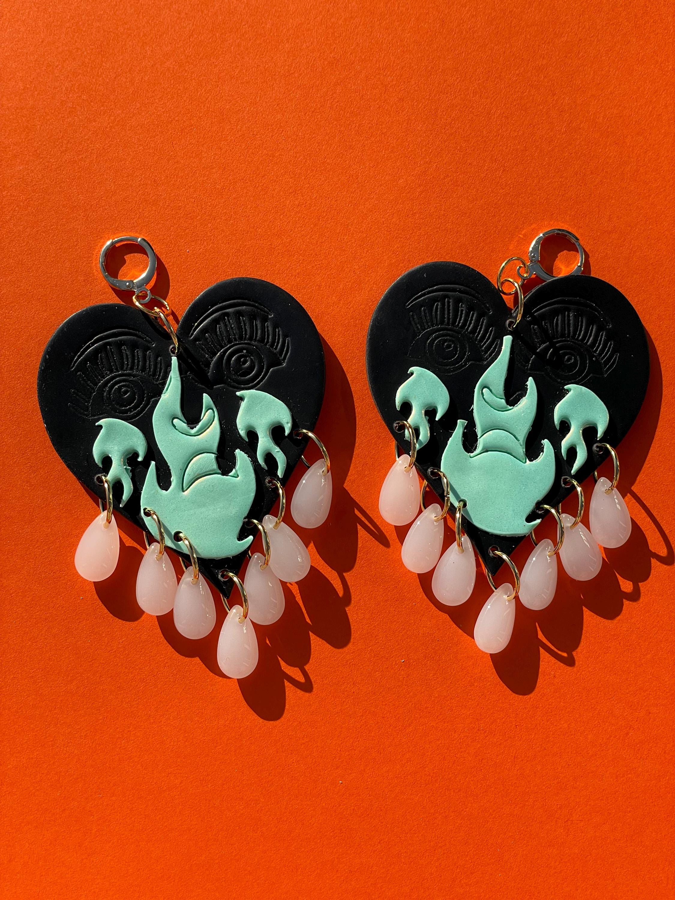 Do not bend or drop earrings. Wipe clay clean with a damp cloth or a q-tip dipped in acetone for stuck on stains. Do not use acetone on painted pieces.