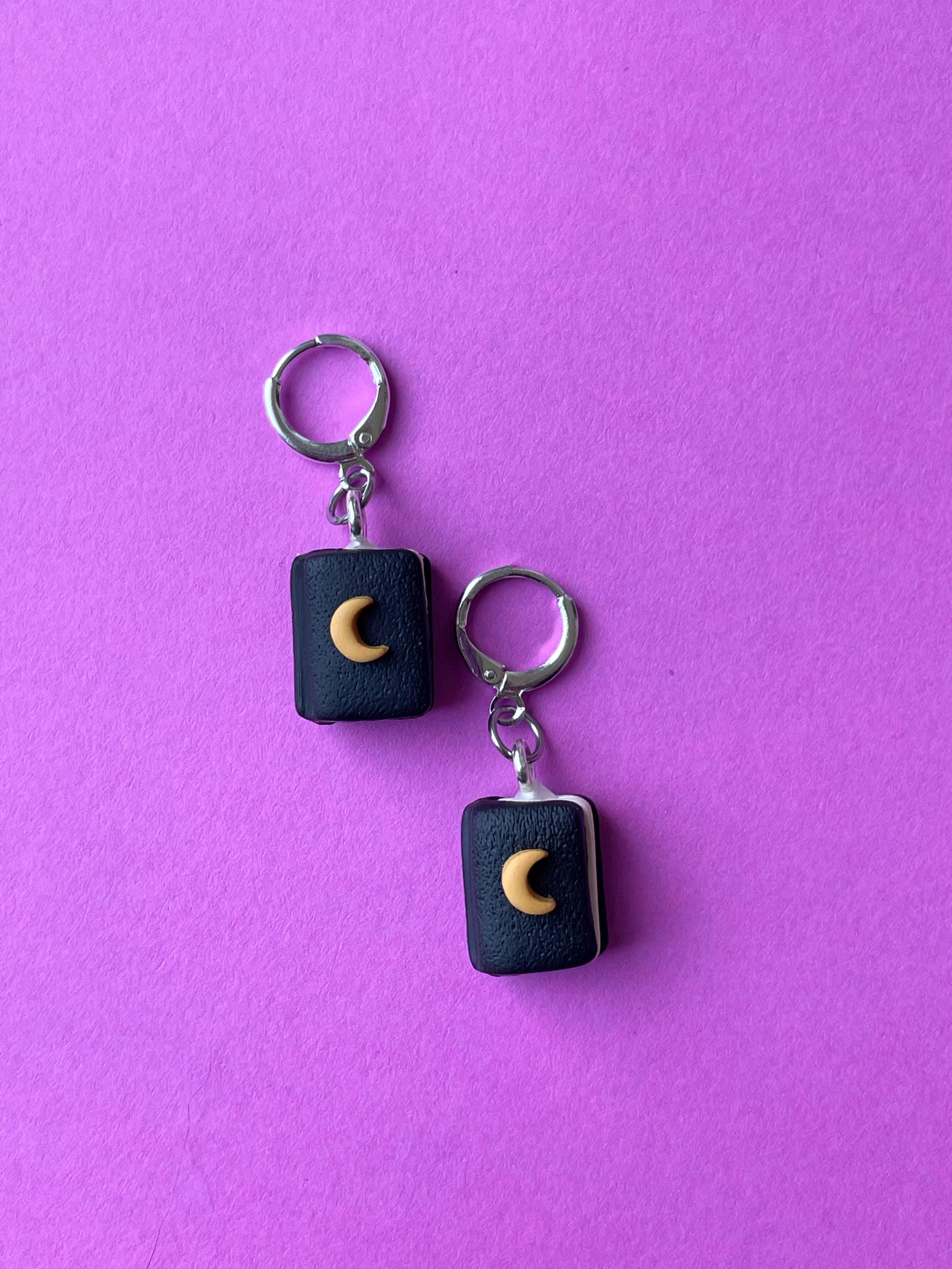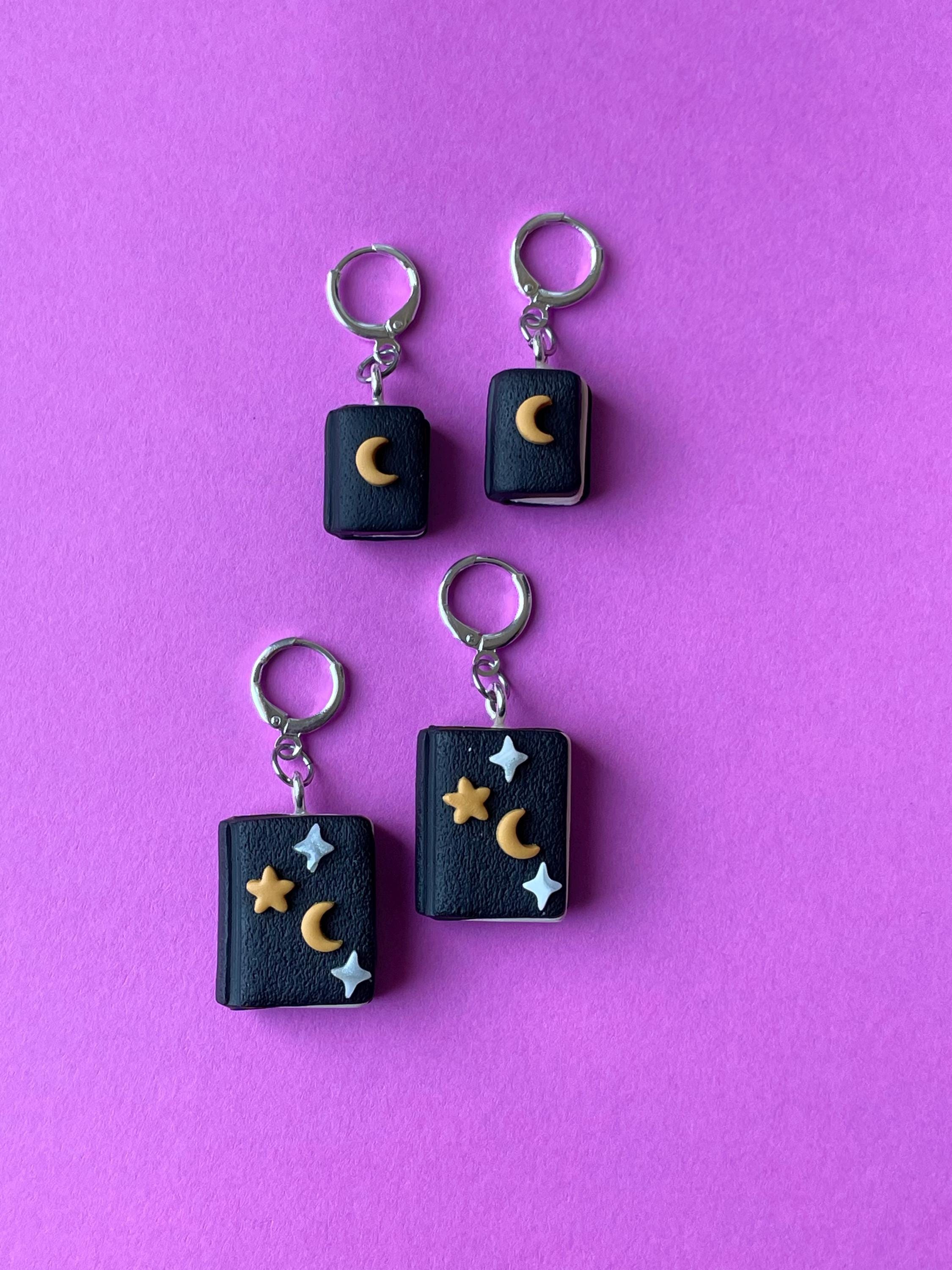 Cute little spell book charm earrings. Check the second photo for a size comparison with the big books!