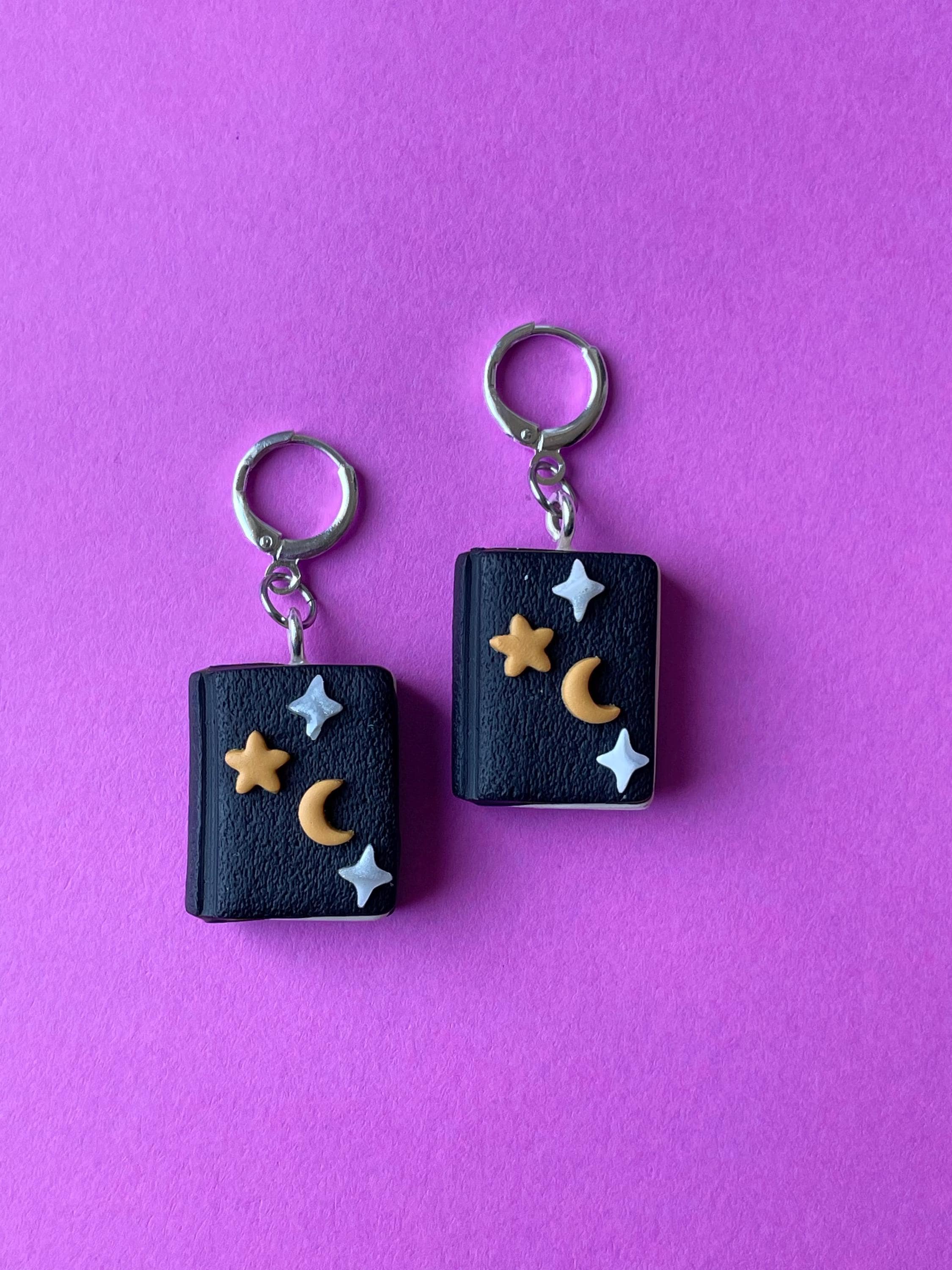 Cute spell book charm earrings. Check the second photo for a size comparison with the little books!
