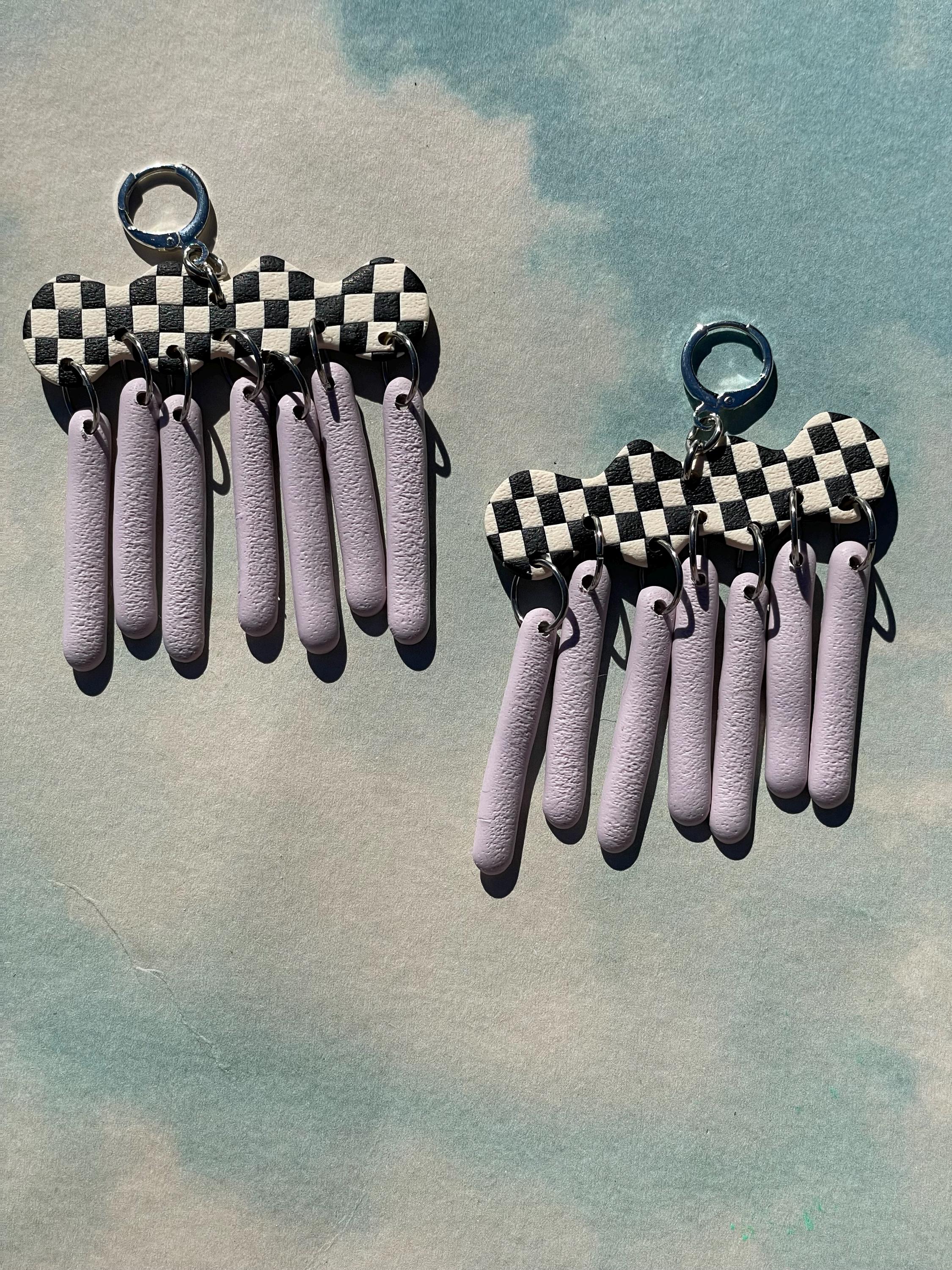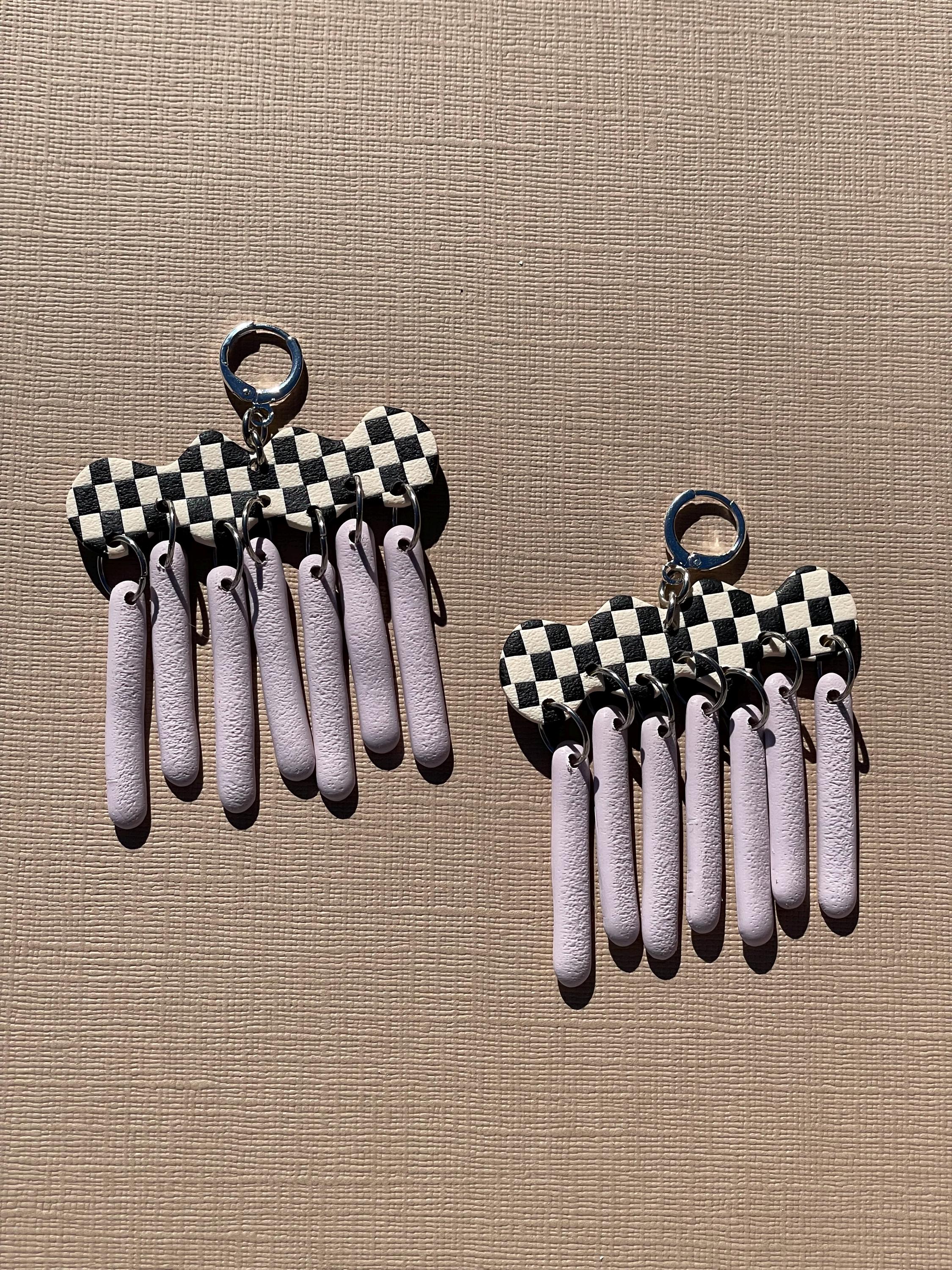 Do not bend or drop earrings. Wipe clay clean with a damp cloth or a q-tip dipped in acetone for stuck on stains. Do not use acetone on painted pieces.