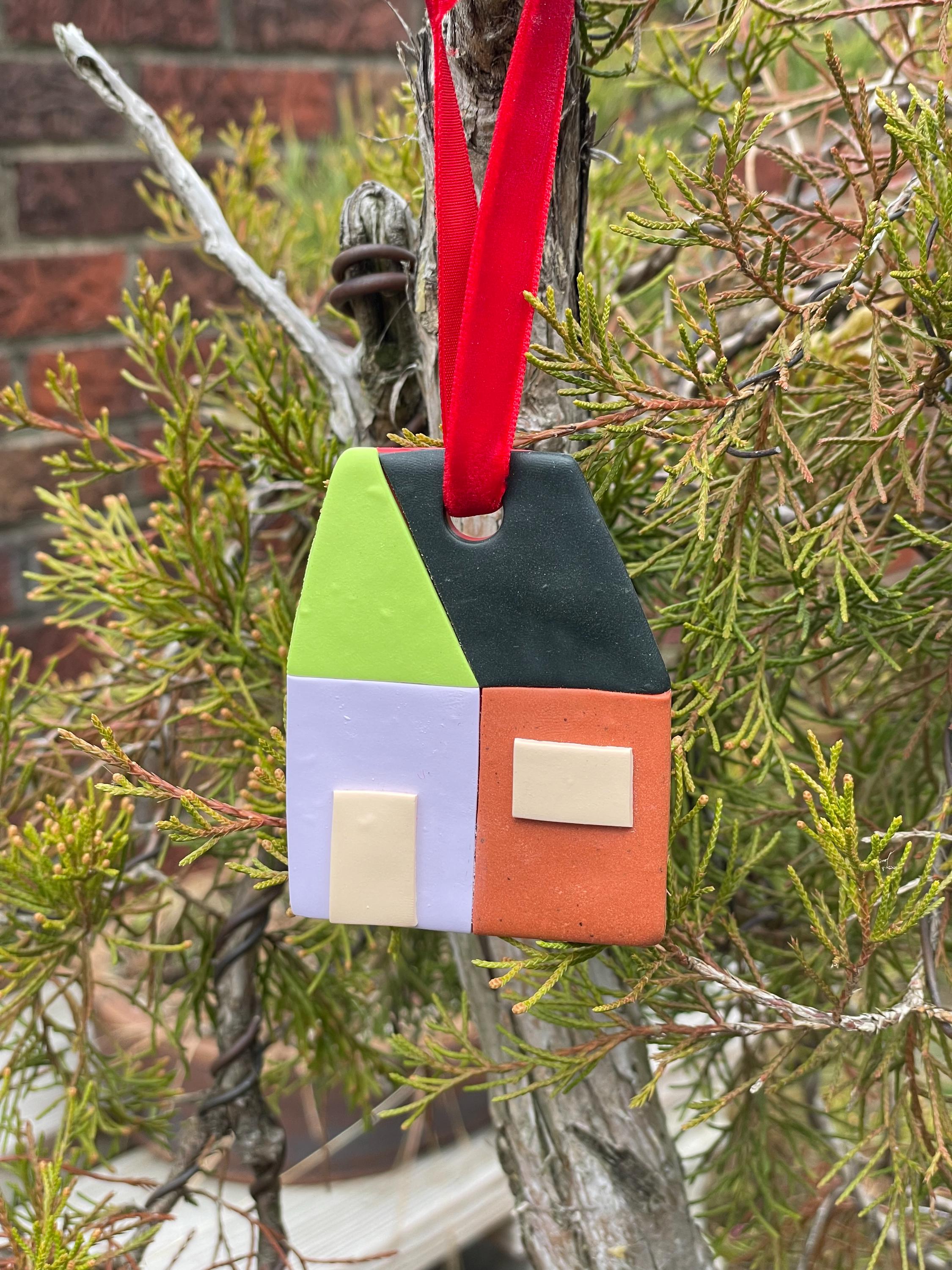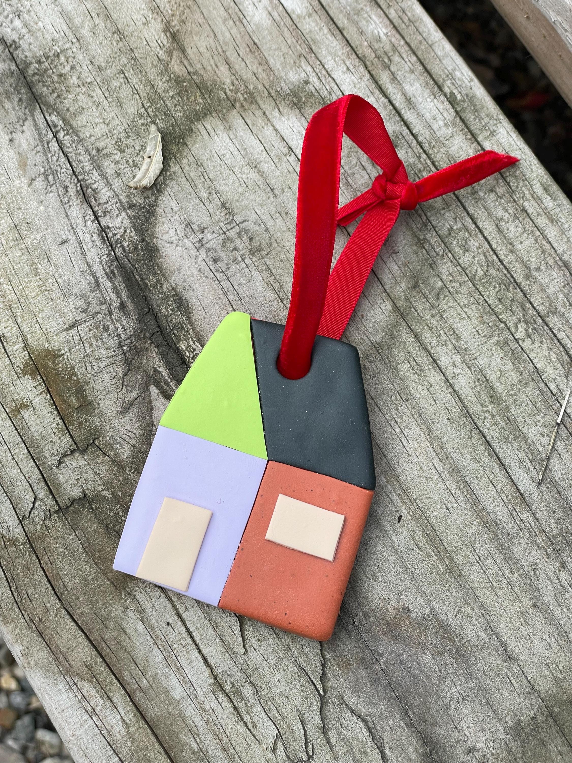 A cute color block house for your Christmas tree!
