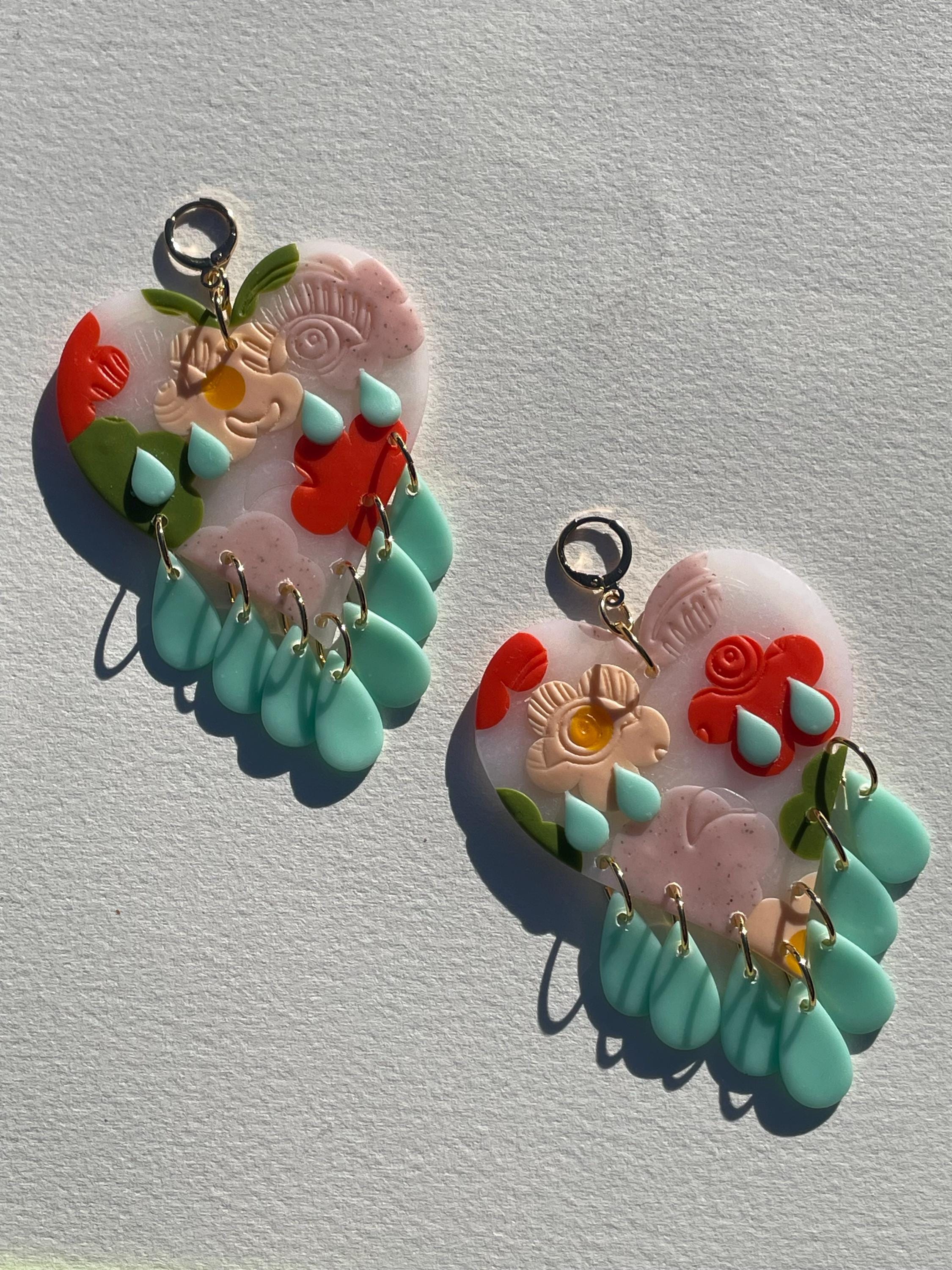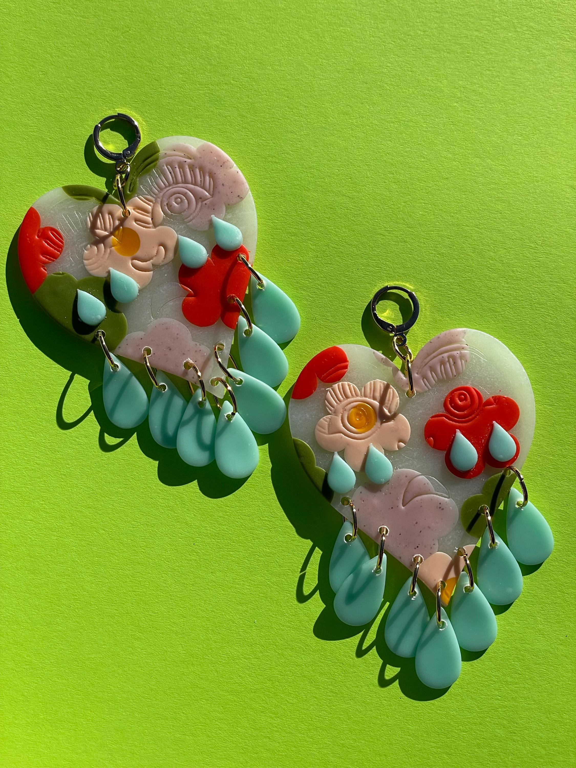 Crying Hearts with translucent clay and floral print - a real conversation piece!!
