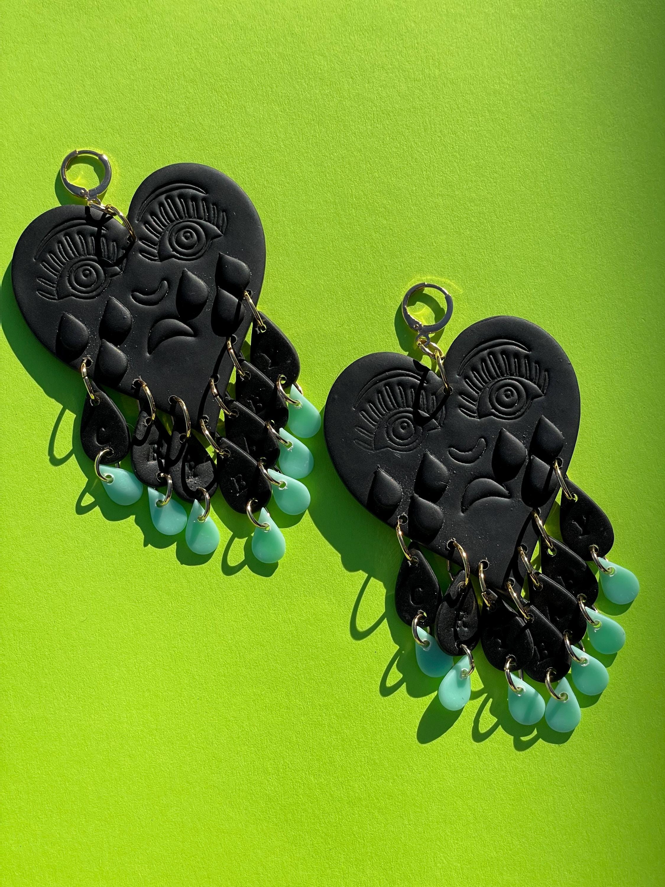 Do not bend or drop earrings. Wipe clay clean with a damp cloth or a q-tip dipped in acetone for stuck on stains. Do not use acetone on painted pieces.