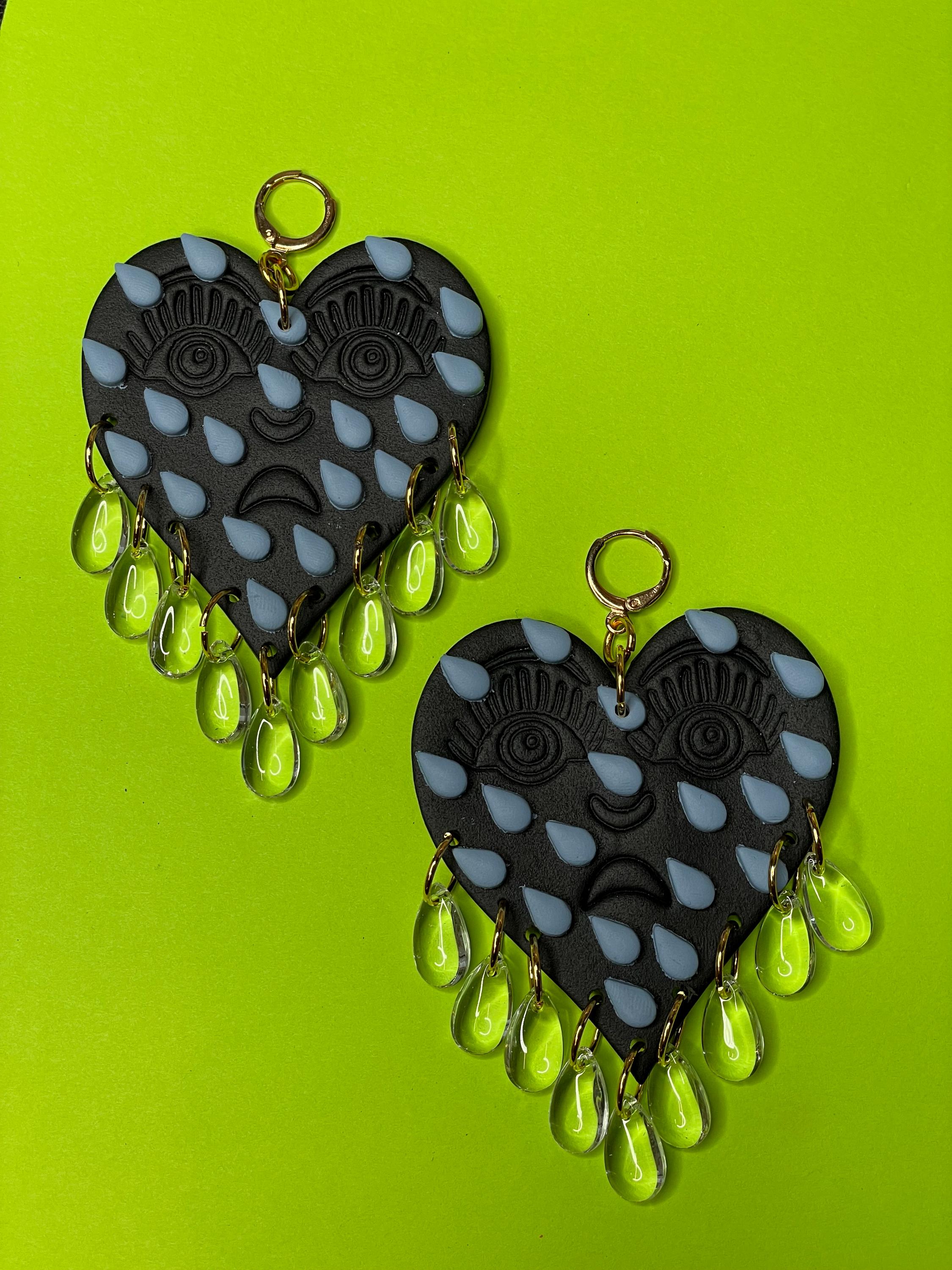 Please take care not to bend your earrings, soak in water or drop them. If the clay itself becomes dirty, wipe gently with a damp cloth or a microfiber cloth - same with the acrylic. Hooks, studs, posts and jump rings are all made with nickel-free materials.