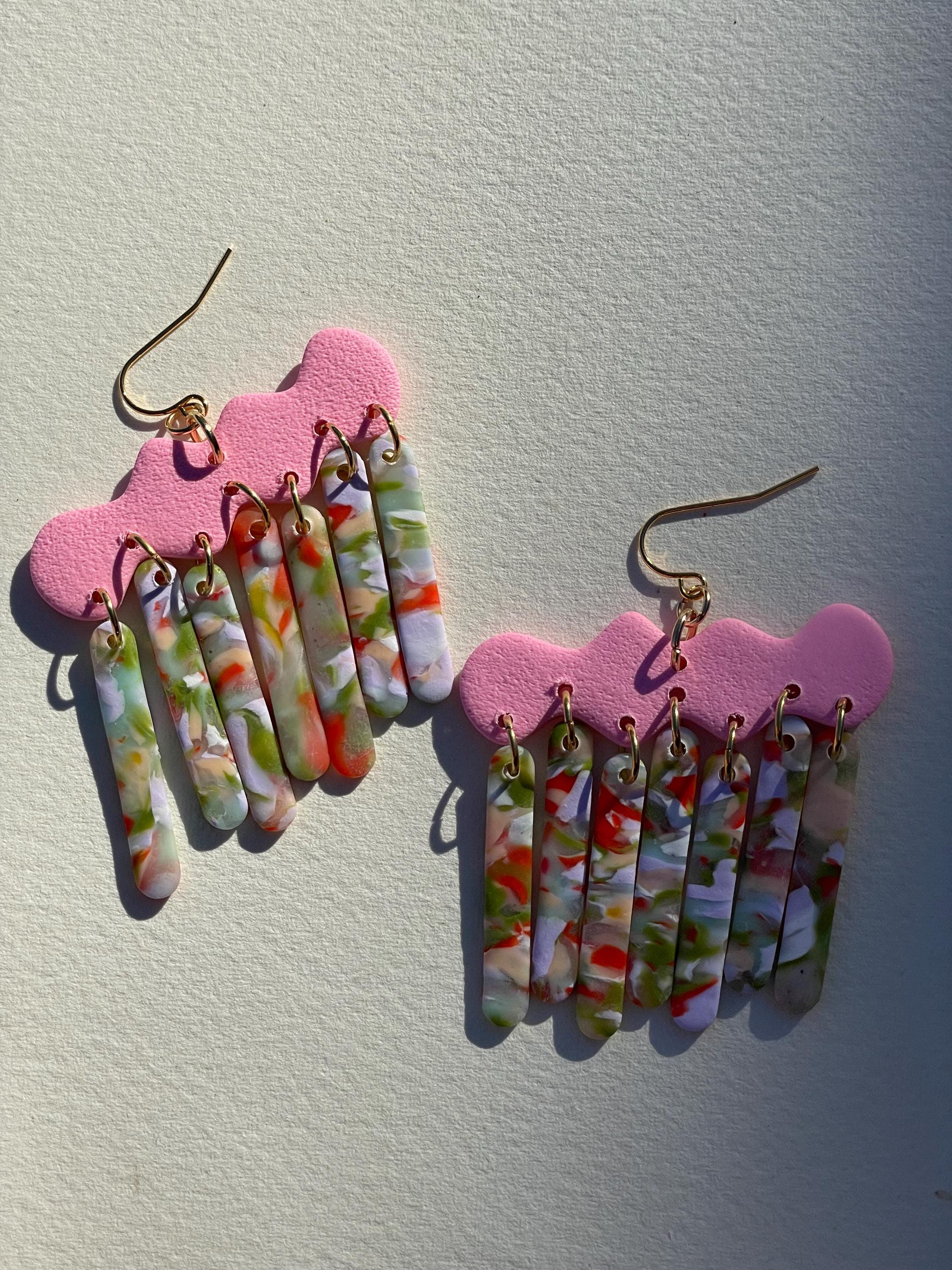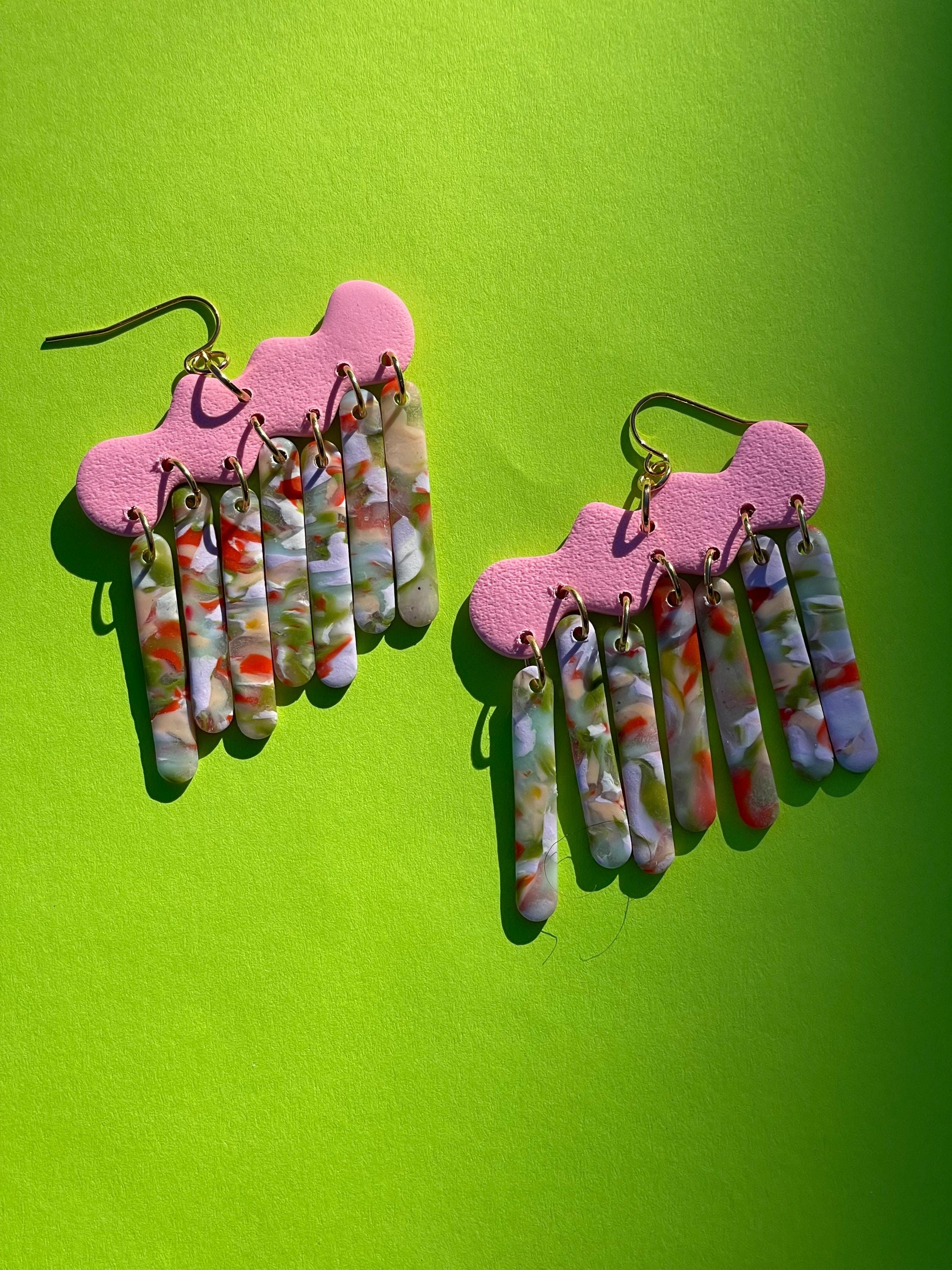 Do not bend or drop earrings. Wipe clay clean with a damp cloth or a q-tip dipped in acetone for stuck on stains. Do not use acetone on painted pieces.