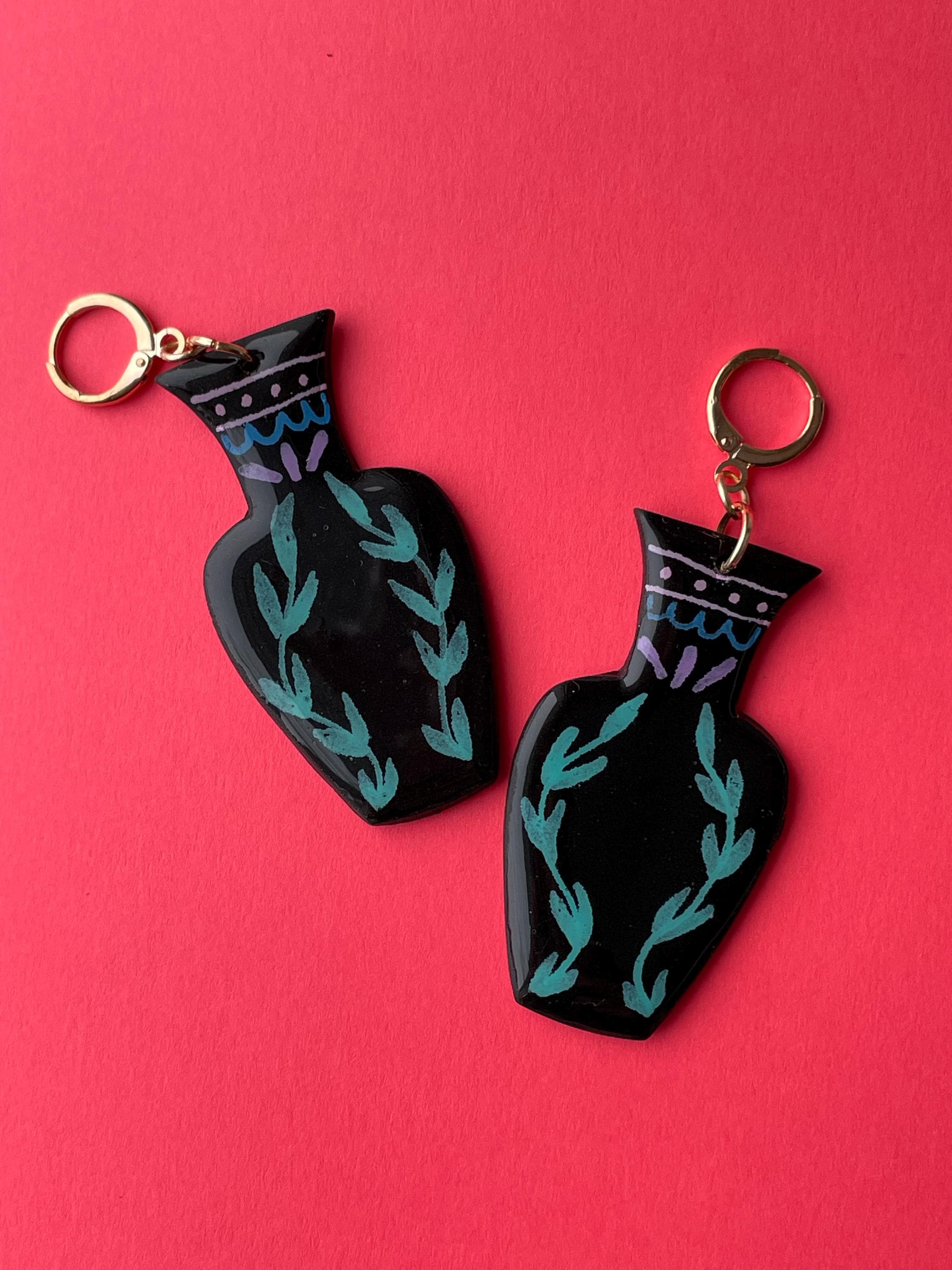 Do not bend or drop earrings. Wipe clay clean with a damp cloth or a q-tip dipped in acetone for stuck on stains. Do not use acetone on painted pieces.