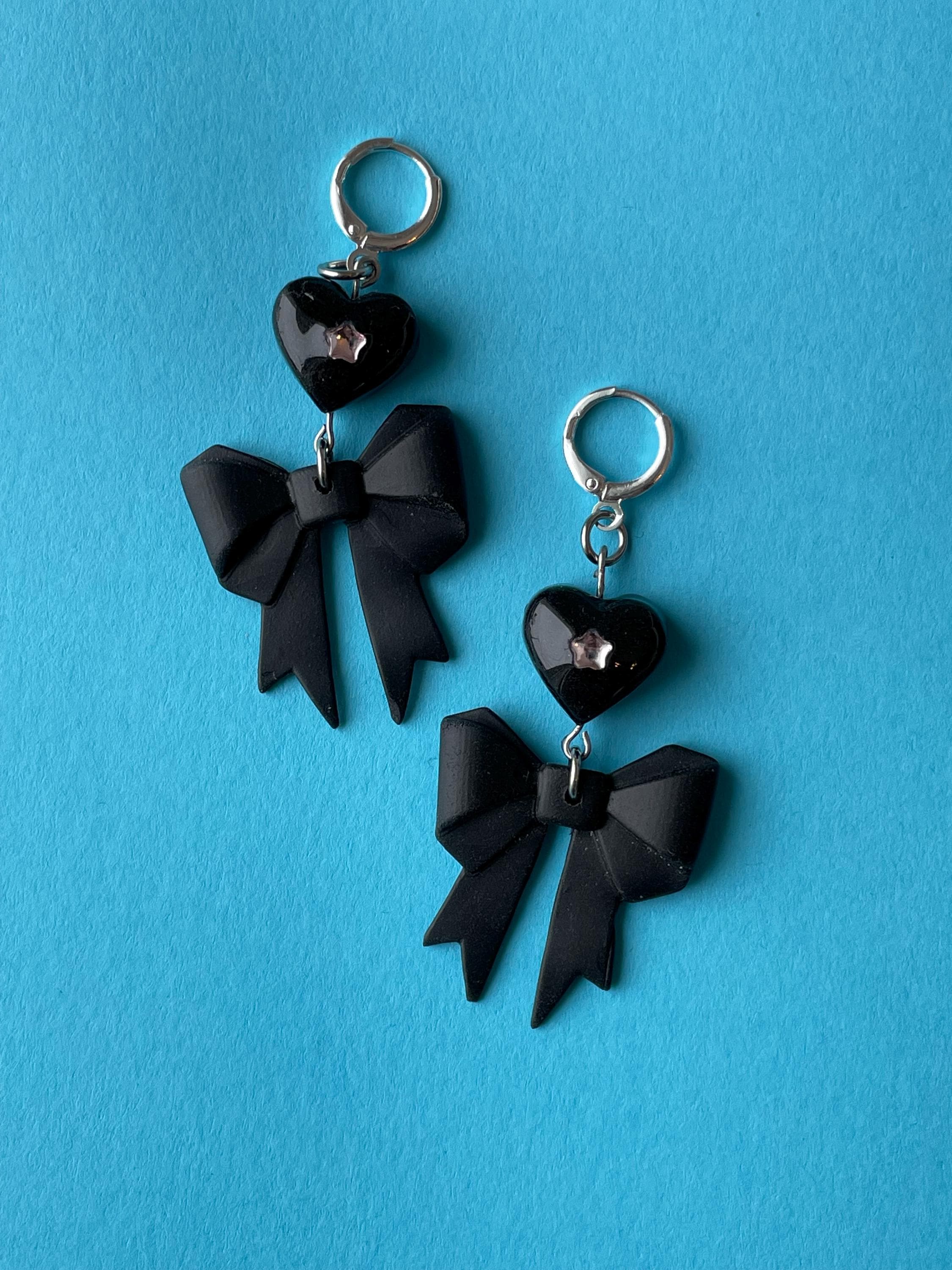 Cute and sweet! Tiny gem stars on heart charms with dangle bows.