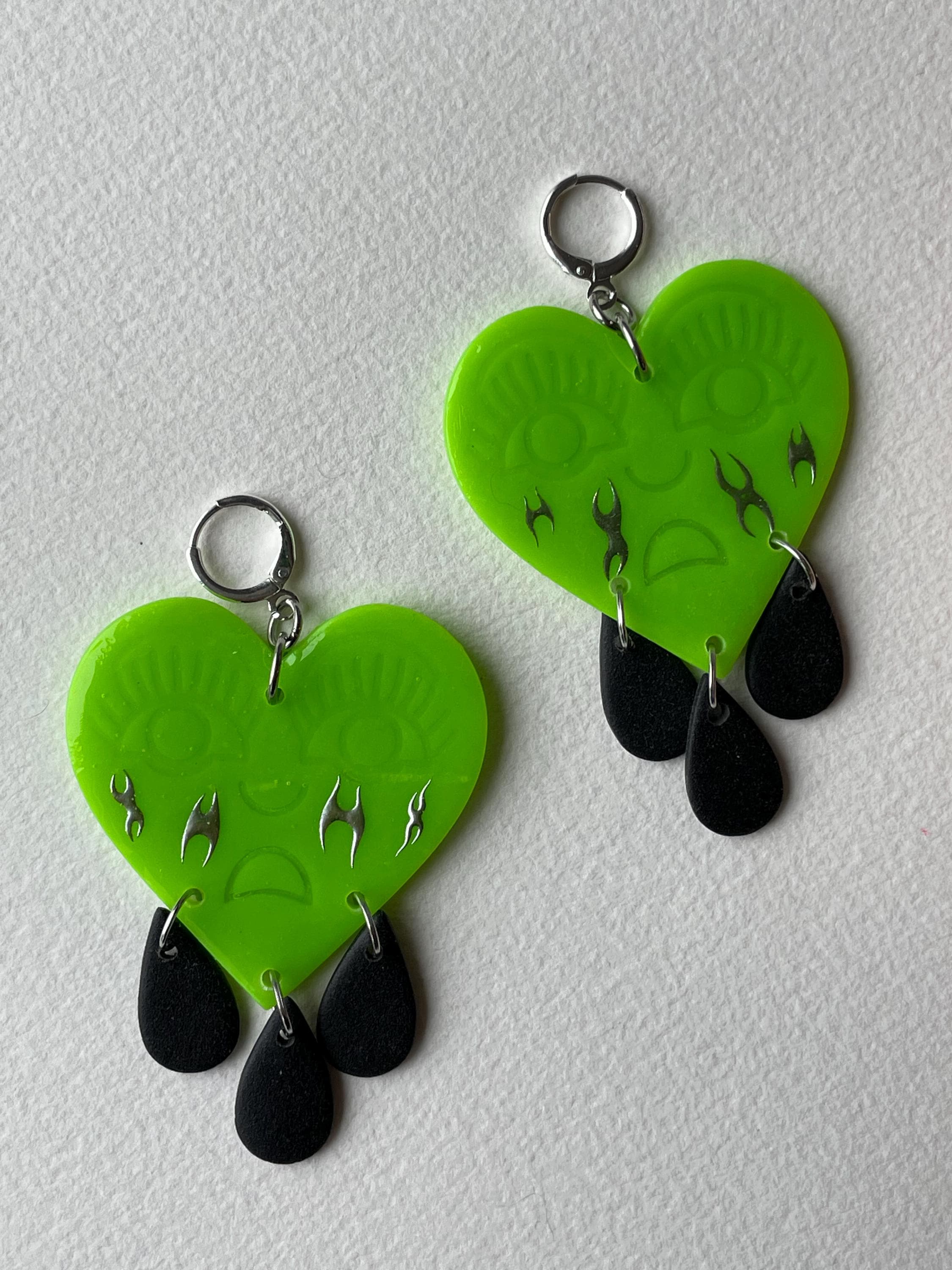 Do not bend or drop earrings. Wipe clay clean with a damp cloth or a q-tip dipped in acetone for stuck on stains. Do not use acetone on painted pieces.