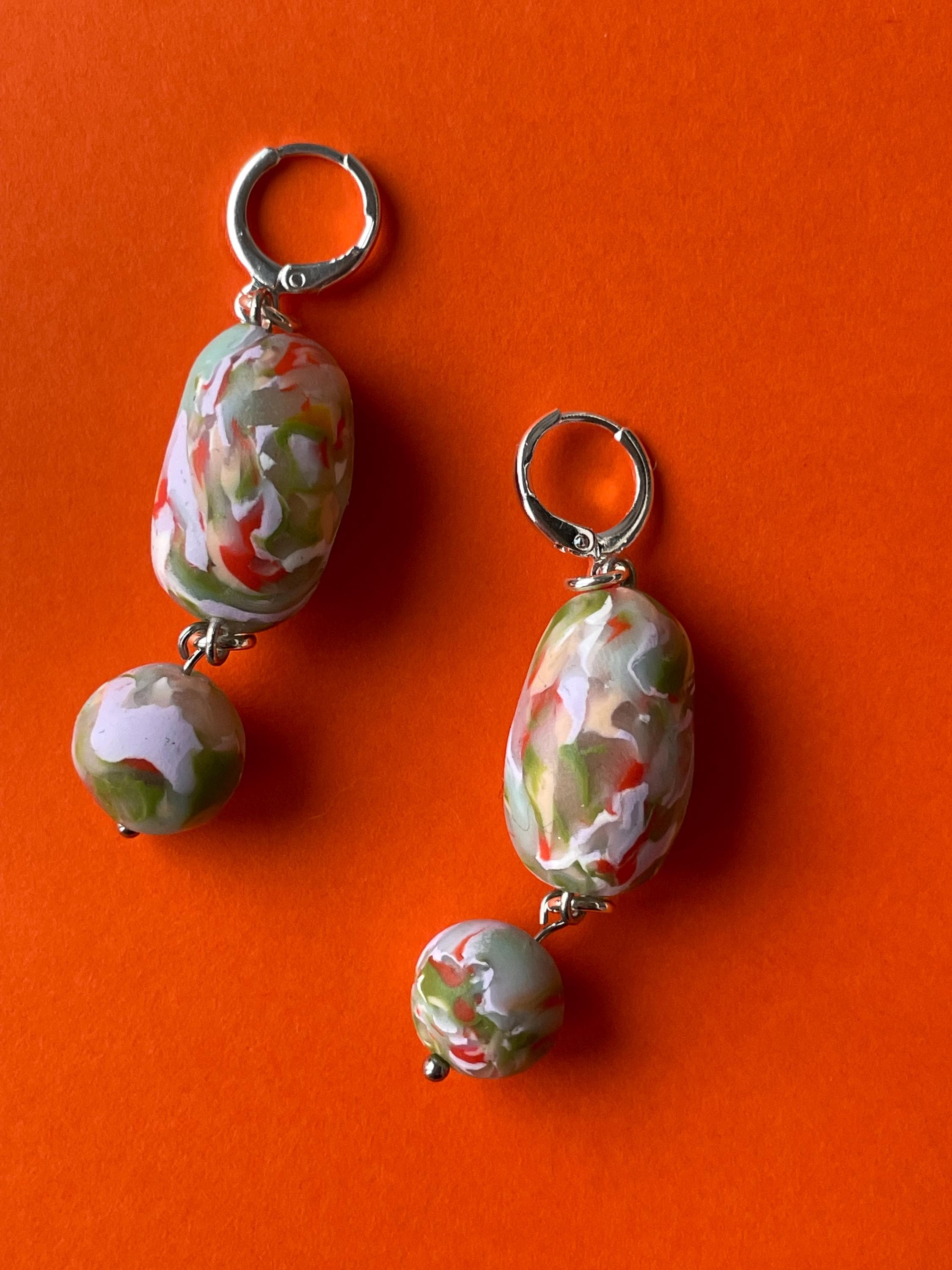 Please take care not to bend your earrings, soak in water or drop them. If the clay itself becomes dirty, wipe them gently with a damp cloth. All hoops and findings are made with nickel-free materials.