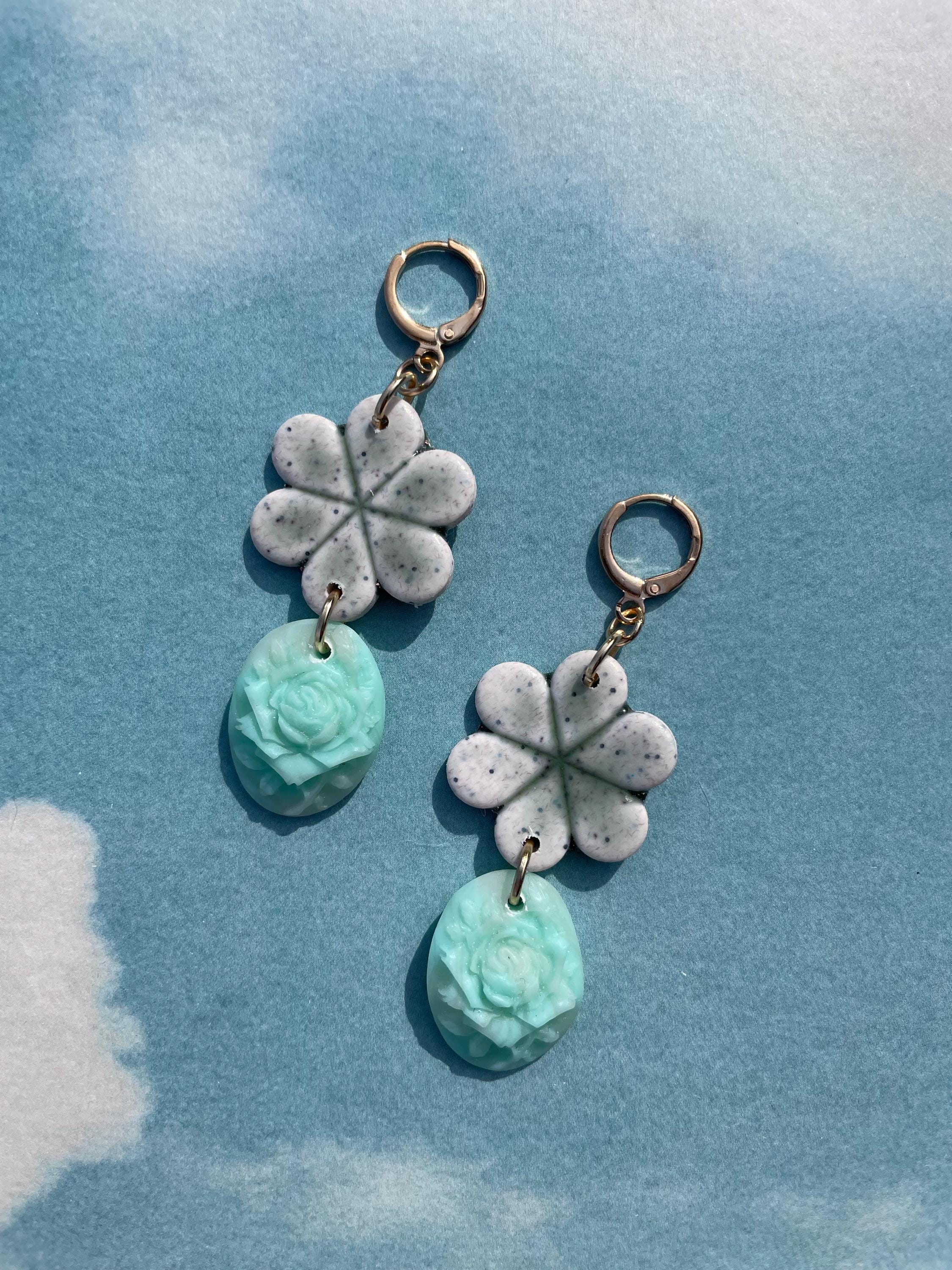 Do not bend or drop earrings. Wipe clay clean with a damp cloth or a q-tip dipped in acetone for stuck on stains. Do not use acetone on painted pieces.