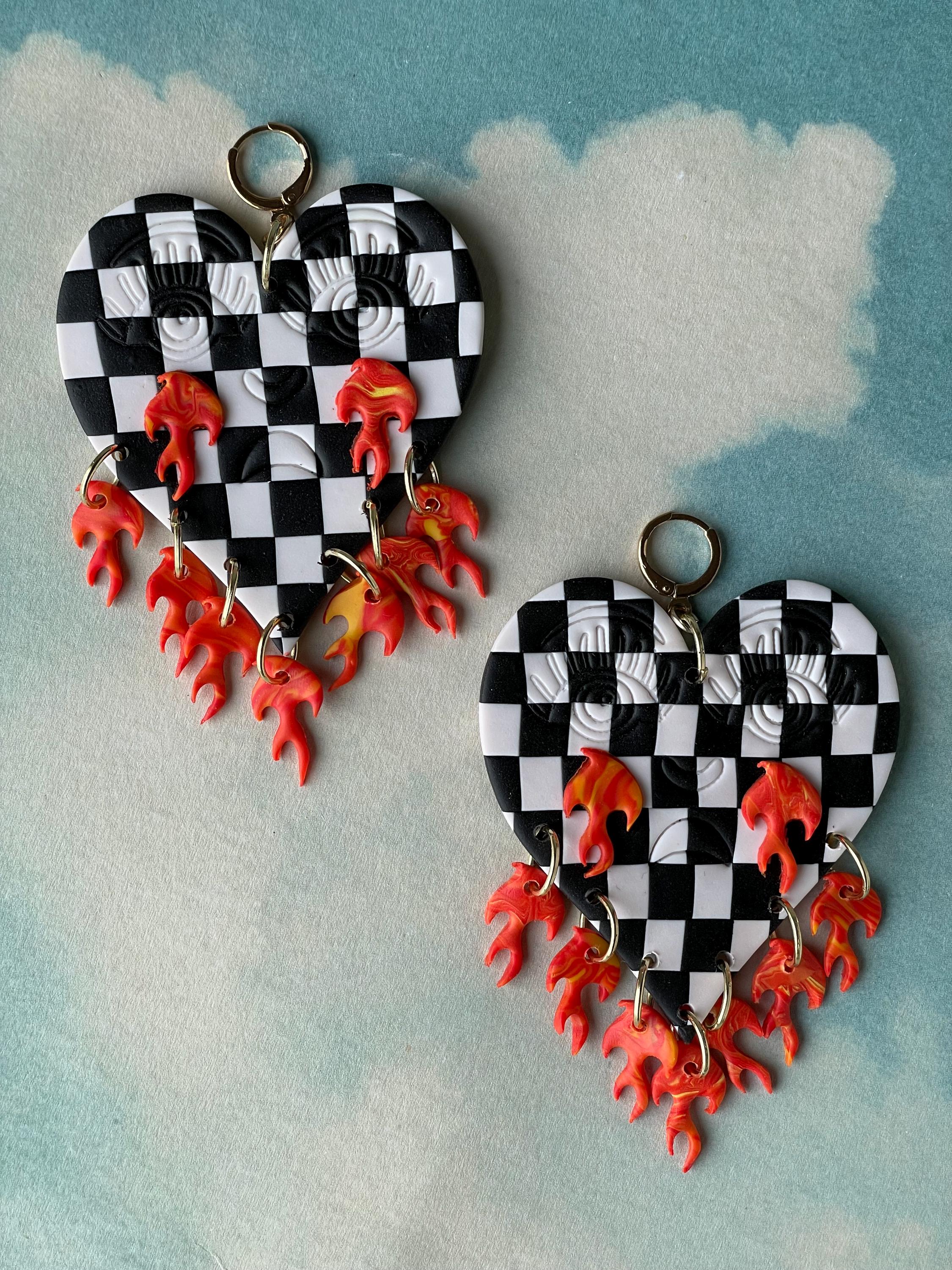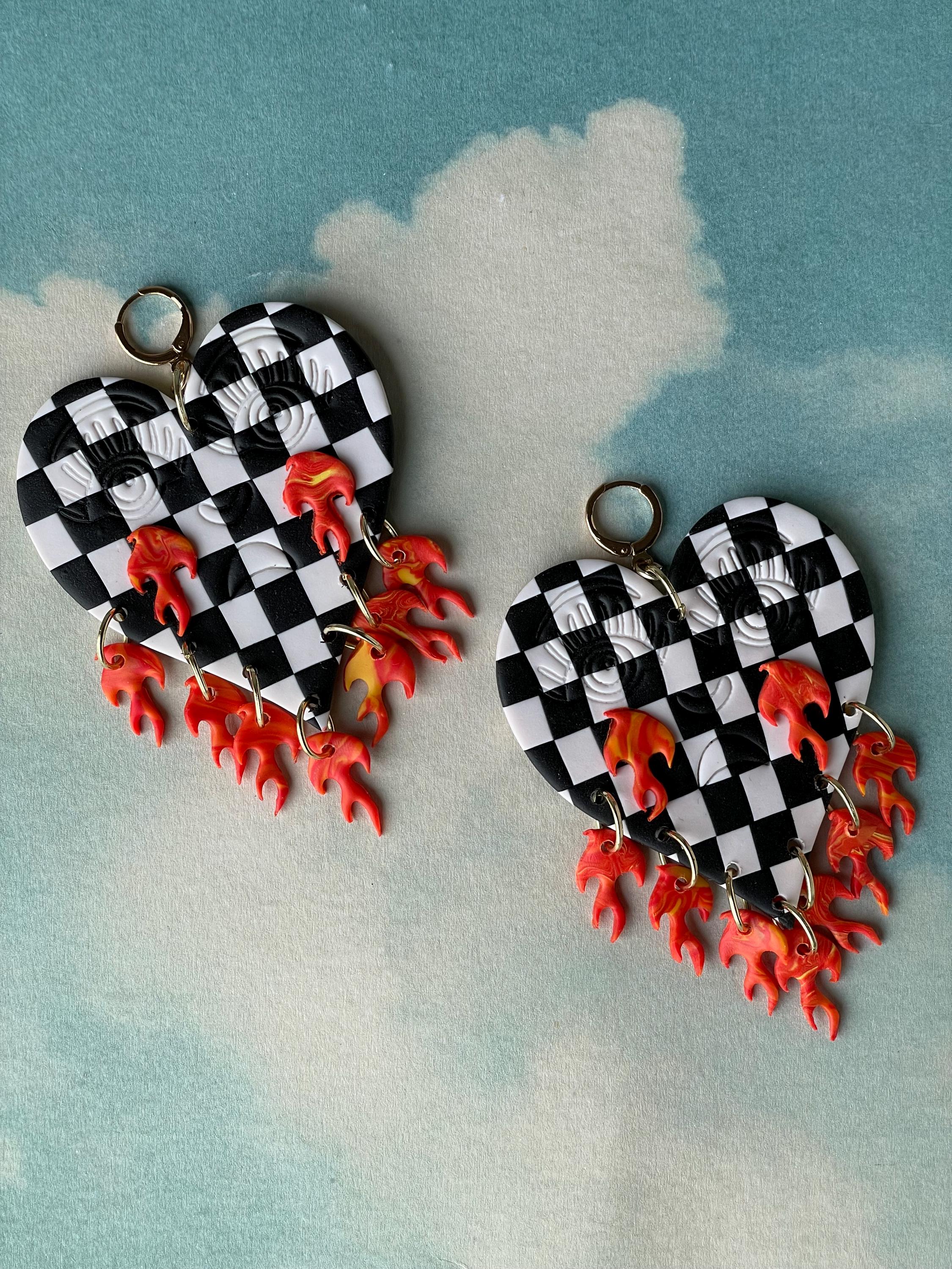 Do not bend or drop earrings. Wipe clay clean with a damp cloth or a q-tip dipped in acetone for stuck on stains. Do not use acetone on painted pieces.